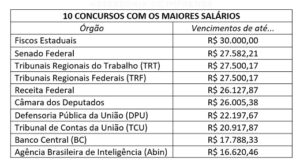 Muita gente tem o desejo de conquistar um cargo público pelos salários oferecidos e também pela proposta de estabilidade, por isso mesmo normalmente os concursos são bem concorridos e, pra conquistar uma boa colocação, é necessário muita dedicação para enfrentar incontáveis horas de estudos, resumos e revisões – além dos compromissos normais do nosso dia a dia, que envolve trabalho, família e vida social. A dedicação é recompensada quando cai o salário. Um levantamento realizado pelo site Próximos Concursos mostra quais são as dez oportunidades que oferecem as maiores remunerações e fazem valer a pena todo esse esforço em 2018.